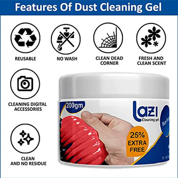 Universal dust cleaning gel use to clean nooks dust Such as the vents or little crevices on the car air vent, steering wheel, console panel, storage bins, cup holder, keyboard, storage bin, printer, cell phone, calculator, speaker and PC screen, etc.