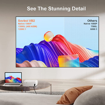 VB2 is the first projector that uses a self-developed Soi-Smart system. Equipped with powerful running memory, say goodbye to clumsy and laggy operations. It provides 2 UI themes/24 local wallpapers and supports custom wallpapers imported. Just freestyle your UI! This HD projector provides USB*2/HDMI*2/AV/Audio output ports, which can be connected to USB, Phone, PC, laptop, TV stick, Switch, DVD, Speakers.