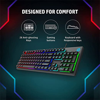 Backlit Membrane Wired Gaming Keyboard with Mixed Color Lighting, Metal Panel with Logo Lighting, 26 Anti-Ghosting Keys, and Windows Lock Key / 3 Years Warranty(7ZZ97AA)
