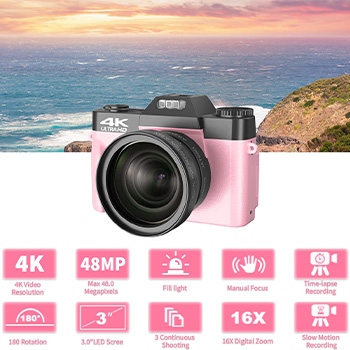 【Camera for Photoggraphy and Video】The digital camera featuring 4K video and 48MP photo resolution, the vlogging camera supports 16X Digital Zoom, Video Pause, Recording while Charging, Loop Recording, Continuous Shooting, Silent Recording, Self-Timer. with the latest upgraded chip to ensure the camcorder images more high-definition, more realistic. It’s the best gift for friends and family.