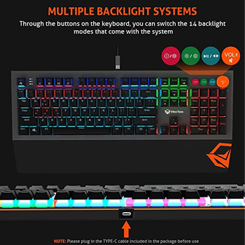 MK500 Mechanical Wired Gaming Keyboard, Full Anti-ghosting Keys, Detachable Palmrest, Frosted Metal Upper Cover, 14 RGB Lights Mode, OUTEMU Blue Switches, Double Color Injection Keycaps