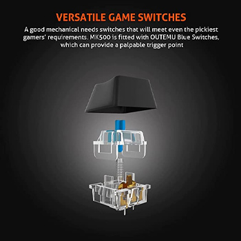 MK500 is fitted with OUTEMU Blue Switches, which can provide a palpable trigger point