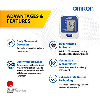 Main unit (Bp Monitor), arm cuff, 4 aa batteries, instructions manual, Omron digital thermometer m-246