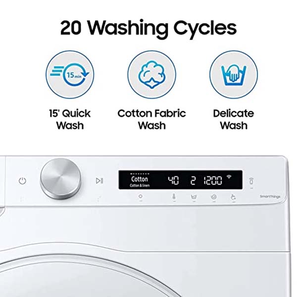 Key Features - Intelligent washing with AI Control | Wi-Fi Connectivity through SmartThings App support | Digital Inverter Technology: Enjoy greater energy efficiency, less noise and a long-lasting performance | Diamond Drum for gentle fabric care | Drum Clean - Keep the inside of your washer hygienically clean | StayClean Drawer - Stop wasting detergent and avoid the tedious task of cleaning the detergent drawer
