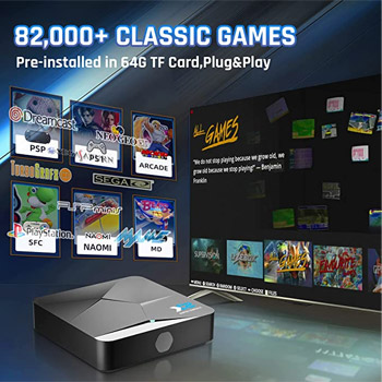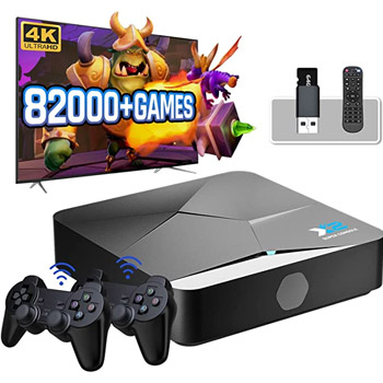 Super Console X2 game system is pre-installed 82,000 + classic video games, compatible with PSP/PS1/MAME/ARCADE...etc 60+ emulators, and includes many large 3D games.Also free 20,000+ large games available for download.