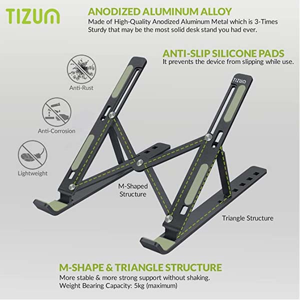 Tizum laptop stand is made of Anodised Aluminium Metal which is 3-Times sturdy that may be the most solid desk stand you had ever.