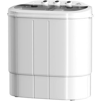 This product designed with twin tub, allowing you to wash and spin clothes at the same time.Our compact washing with lightweight only 9 pounds, suitable for dorms, apartments, condos, RV’s, camping trips or anywhere with limited space!