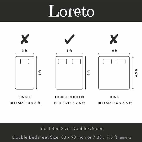 Double Size Bed Sheet Set - 1 Flat sheet 88" x 90" or 223 cm x 228 cm, 2 Pillowcase 17" x 27" or 43 cm x 68 cm. Ideal for a double/queen size bed. Colour - White, Thread Count - 144