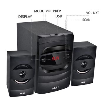AKAI 2.1 Channel Multimedia Speaker System LED Display, Subwoofer driver size 4.5", Satellite driver size 3"