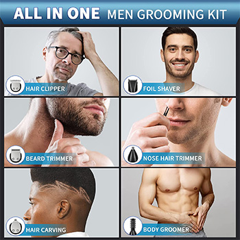 [Multi-Functional Trimmer Kit & Gifts for Men]:This trimmer has a precise shaving system design. The barber kit comes with 6 accessories: full-size trimmer/precision trimmer/design trimmer/body trimmer/nose trimmer/micro shaver, which can meet all your daily needs. Also equipped with 5 guide combs (3, 6, 9, 12mm, sideburns combs) can provide more choices for your cutting style. It's a good choice as fathers day gift, birthday, christmas and valentines day gifts for your husband, father, etc.