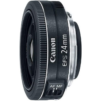 Wide angle lens for Canon APS C cameras (equivalent to 38 millimeter on a full frame camera) Focal length & maximum aperture: 24 millimeter 1:2.8, maximum magnification of x0.27 Slimmest and lightest lens of the EF S series