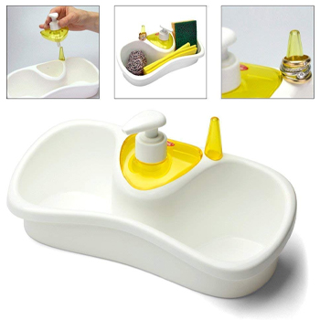 The soap pump has a removable head to re fill, and the base has two storage compartments either side, ideal for sponges, scourers, or a Cif bottle.