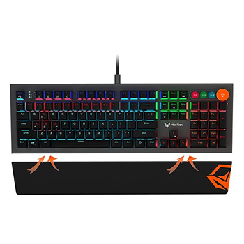 MK500 Mechanical Wired Gaming Keyboard, Full Anti-ghosting Keys, Detachable Palmrest, Frosted Metal Upper Cover, 14 RGB Lights Mode, OUTEMU Blue Switches, Double Color Injection Keycaps