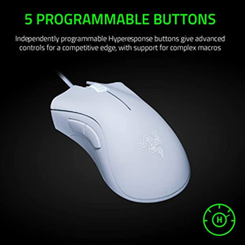 Durable Mechanical Switches: Supports up to 10 million clicks, backed by a 2 year warranty Ridged, Rubberized Scroll Wheel for Maximum Accuracy: Small, tactile bumps increases grip and allows for more controlled scrolling in high-stakes gaming situations 5 Programmable Buttons: Allows for button remapping and assignment of complex macro functions through Razer Synapse