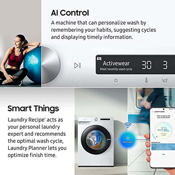 Key Features - Intelligent washing with AI Control | Wi-Fi Connectivity through SmartThings App support | Digital Inverter Technology: Enjoy greater energy efficiency, less noise and a long-lasting performance | Diamond Drum for gentle fabric care | Drum Clean - Keep the inside of your washer hygienically clean | StayClean Drawer - Stop wasting detergent and avoid the tedious task of cleaning the detergent drawer