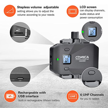 wireless smartphone microphone comes with special LCD screen can display channels, audio status and power consumption, with dynamic detection of real-time monitoring.
