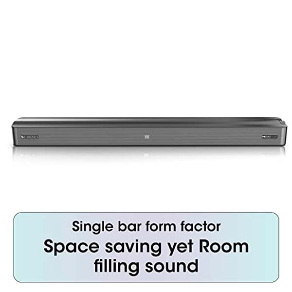 Experience Dolby Audio decoding, with immersive sound stage, clear audio and extreme detailing while connected to Smart TVs (with Dolby Audio) and other suitable devices. With 100 Watts RMS output power, the soundbar's Quad drive configuration provides the best balance of clear dialogues, room filling virtual surround audio and a pleasant yet powerful output.
